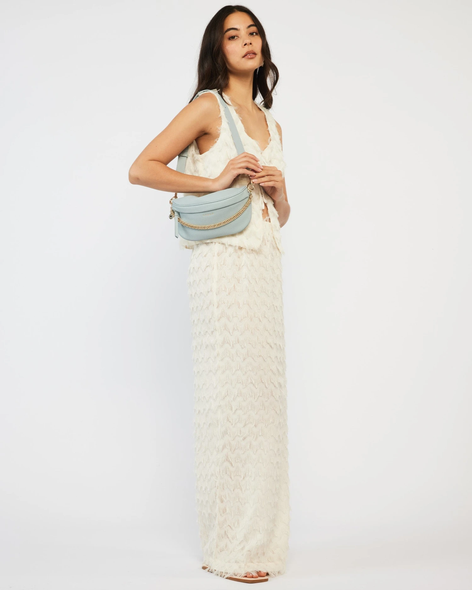 – Extend the strap length by connecting the chain strap to the crossbody strap