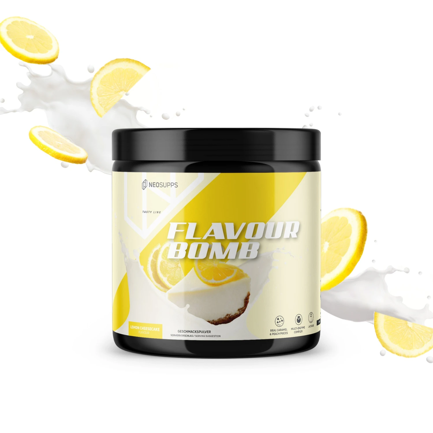 Mische nach Bedarf 1 Portion (3g) mit 300 ml Flüssigkeit. Die Neosupps Flavour Bomb können auch für Naturjoghurts, Quark- oder Haferspeisen verwendet werden.
