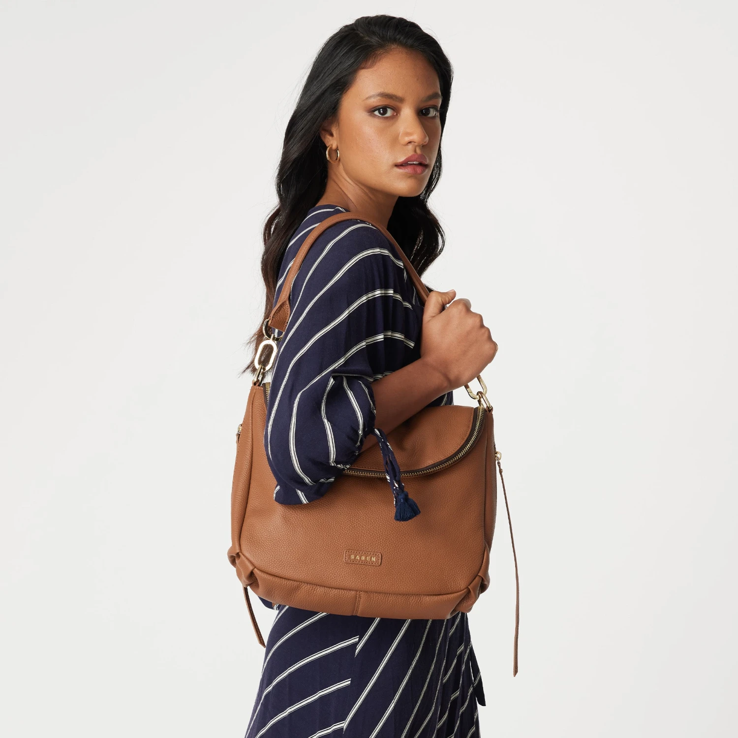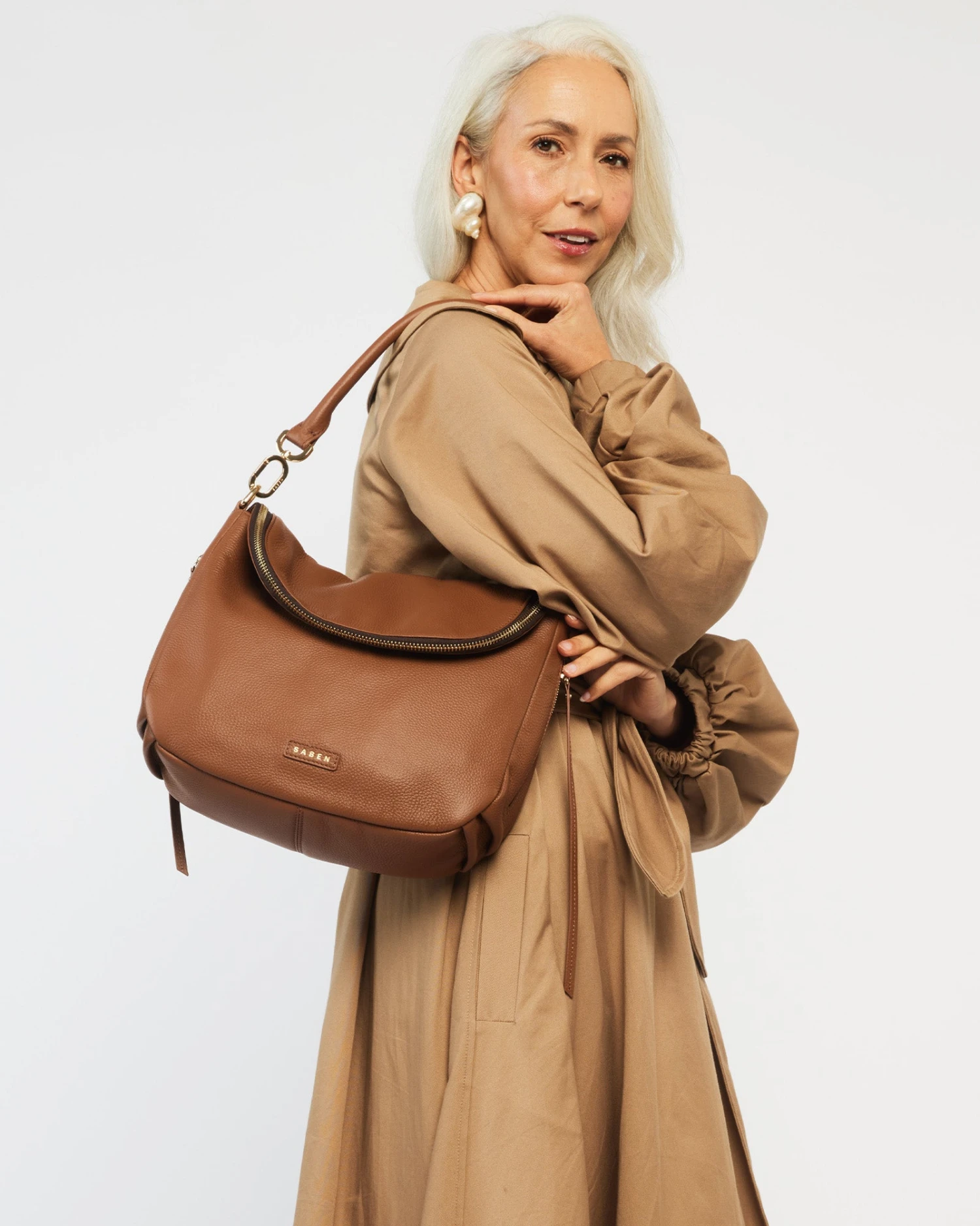 Everyone’s favourite and oh-so functional Frankie! A slouchy shoulder bag, constructed in beautiful pebbled leather. The satchel flap opens with a functional oversized zip to reveal an entirely separate & secure compartment. She is the perfect partner from Monday to fun-day. Use the pockets-a-plenty to organise your life.