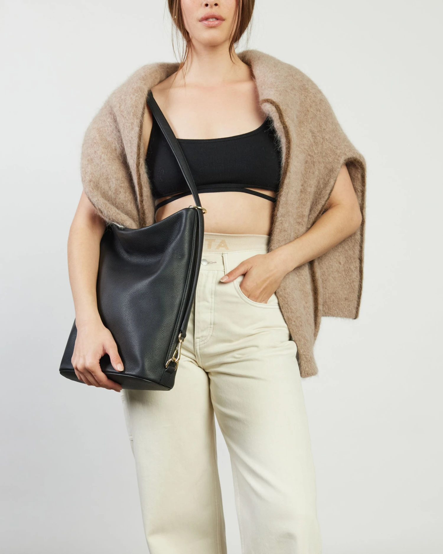 A chic bucket style tote designed for your everyday needs. June’s sleek, adjustable shoulder strap and a secure magnetic closure provides generous space for all your essentials – and then some. Simply unclip the statement SABEN hardware to extend the bag to a set length crossbody.