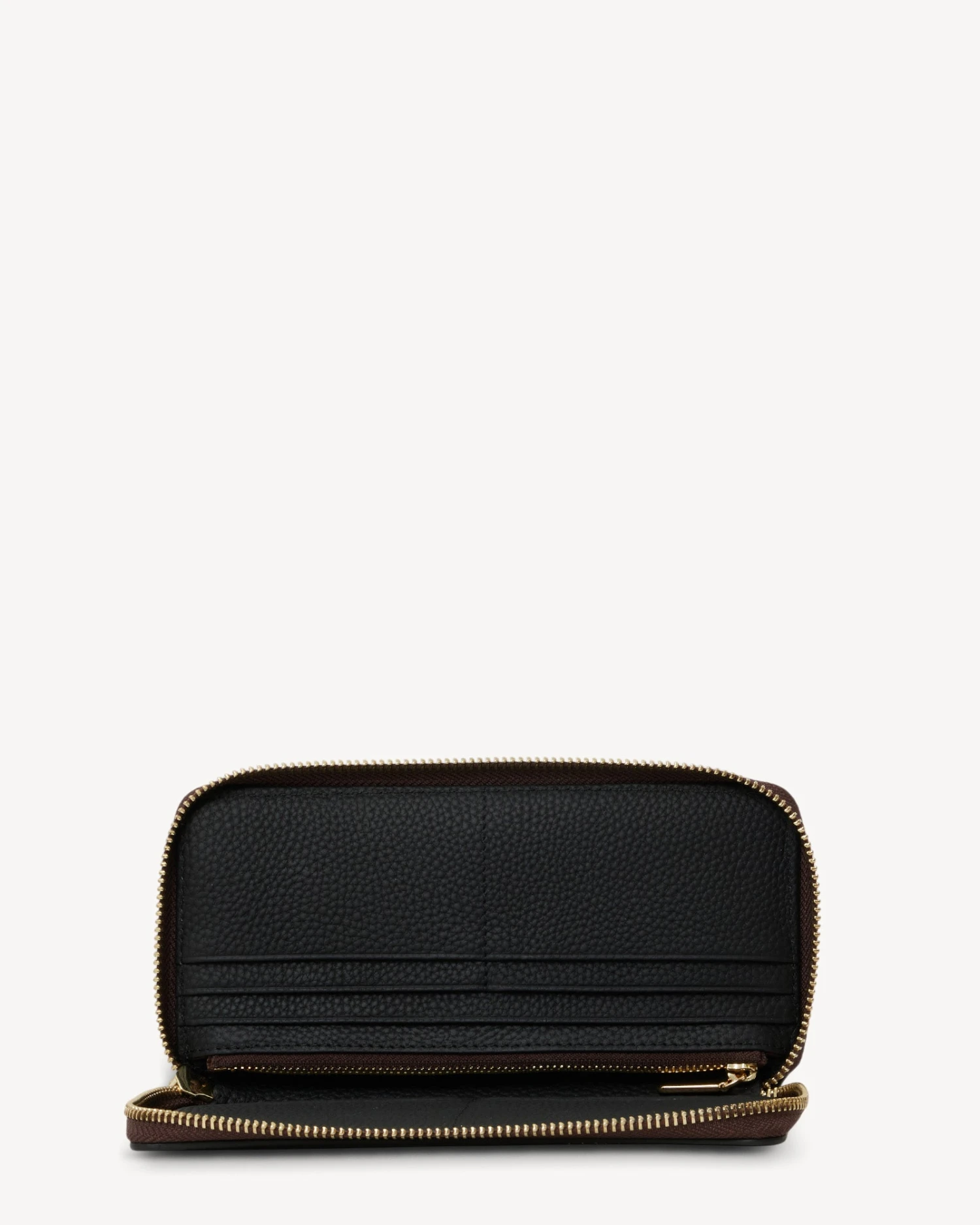 New to the Saben wallet family this season is Lyric, a full-sized version of Landry. We think this new rockstar wallet has all the makings of your next wardrobe MVP. Lyric’s zip mouth allows for easy access, allowing her to be opened flat like a book and makes finding cards a breeze. Front leather frame detailing is the crown on top of this future classic. Lyric is built to last in leather which will soften with every wear.