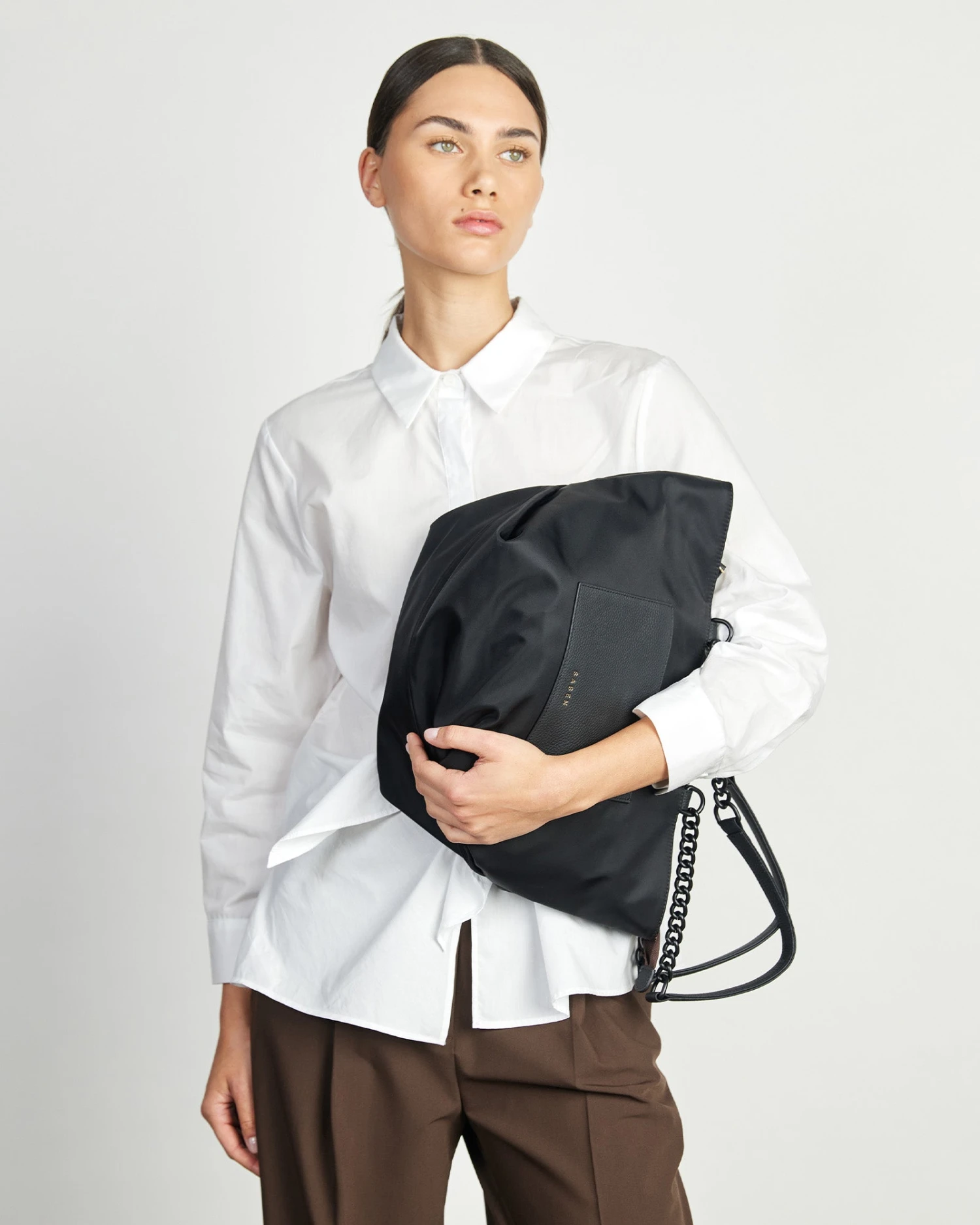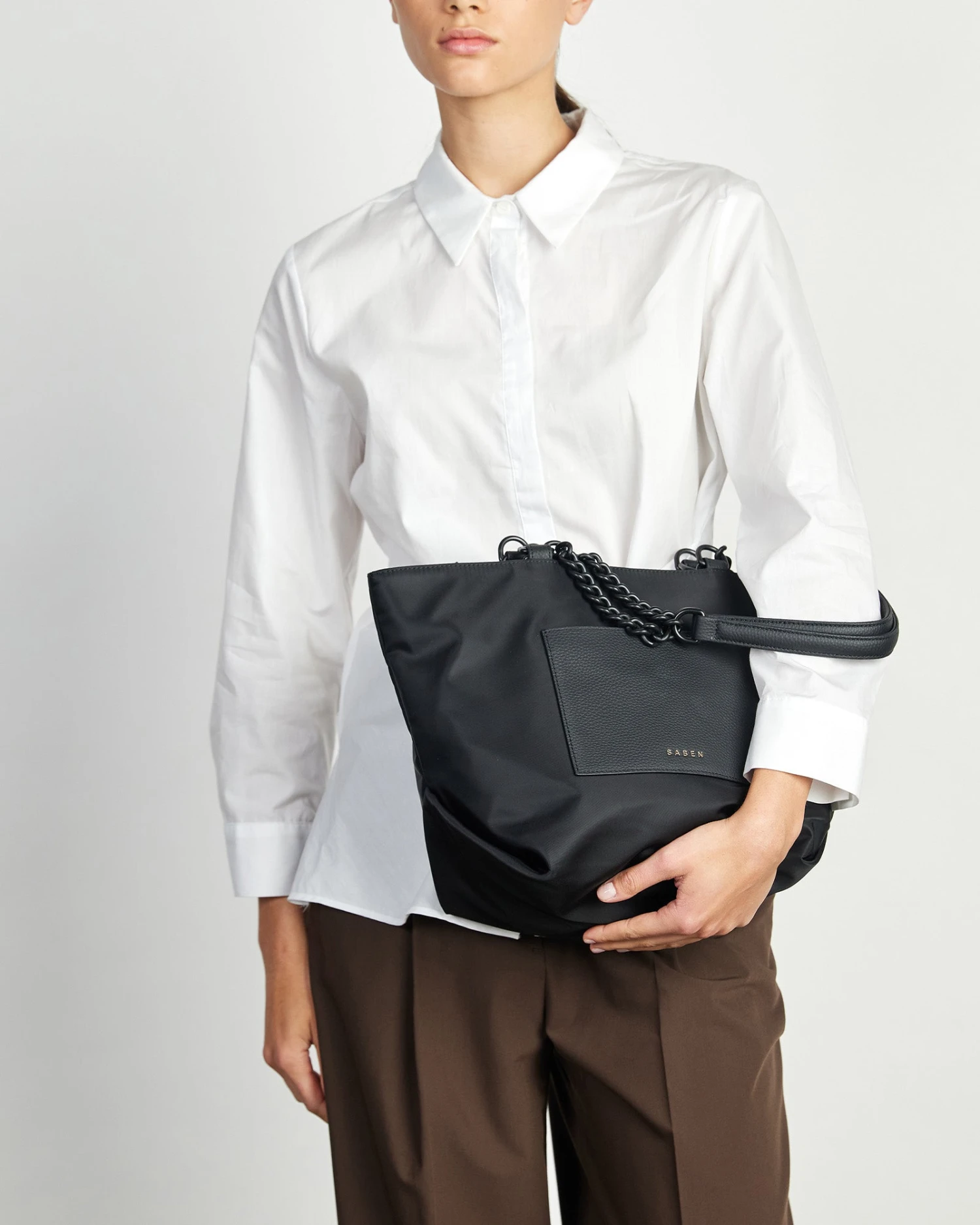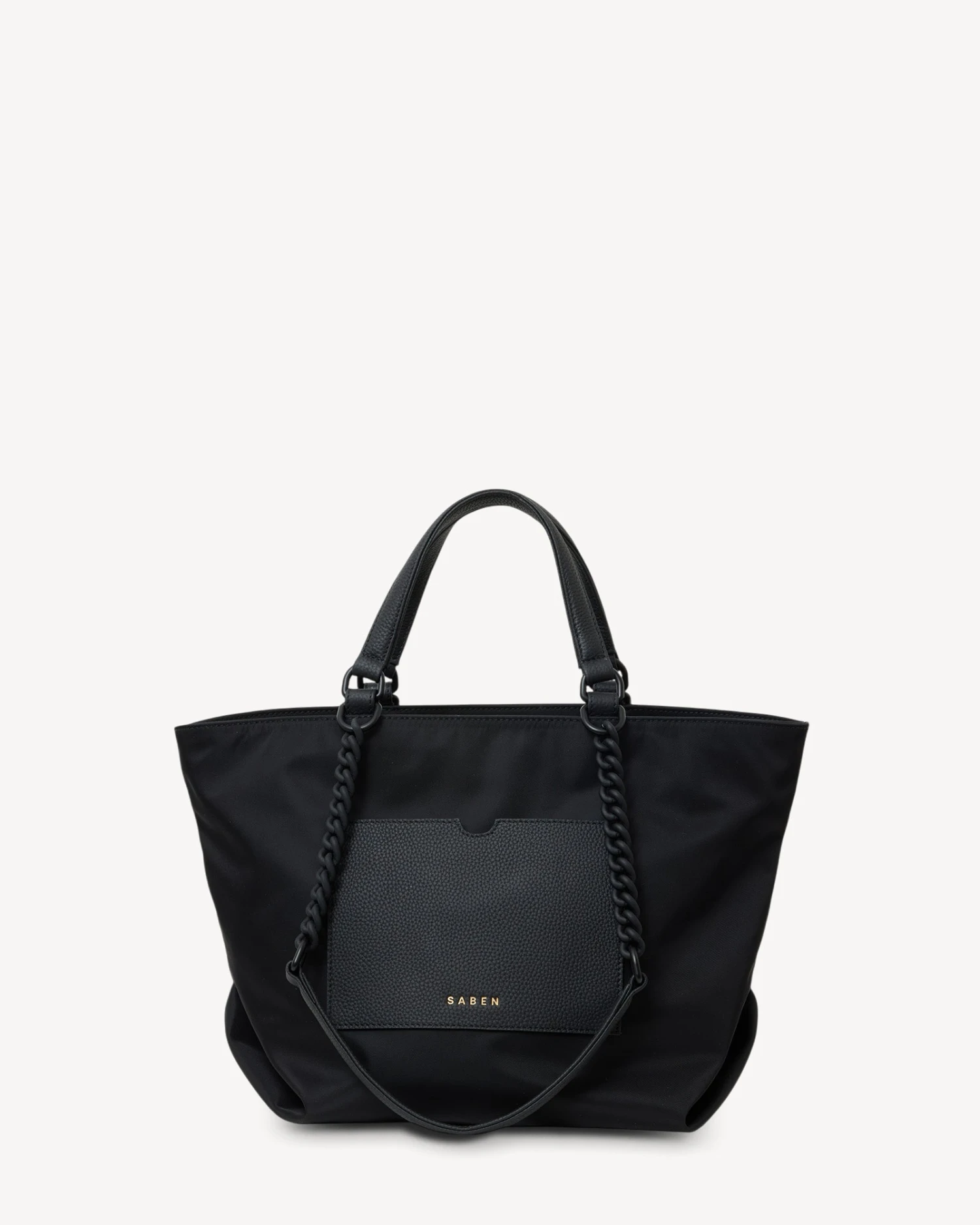 Introducing the Paris tote, made with innovative heavy duty recycled nylon that is both lightweight and timeless. Thoughtfully designed, Paris’ handles have been made to tuck inside the bag, so you can switch from shoulder bag to top handle tote at a moment’s notice. Feature chain strap handles with leather shoulder rests make for a comfortable commute.