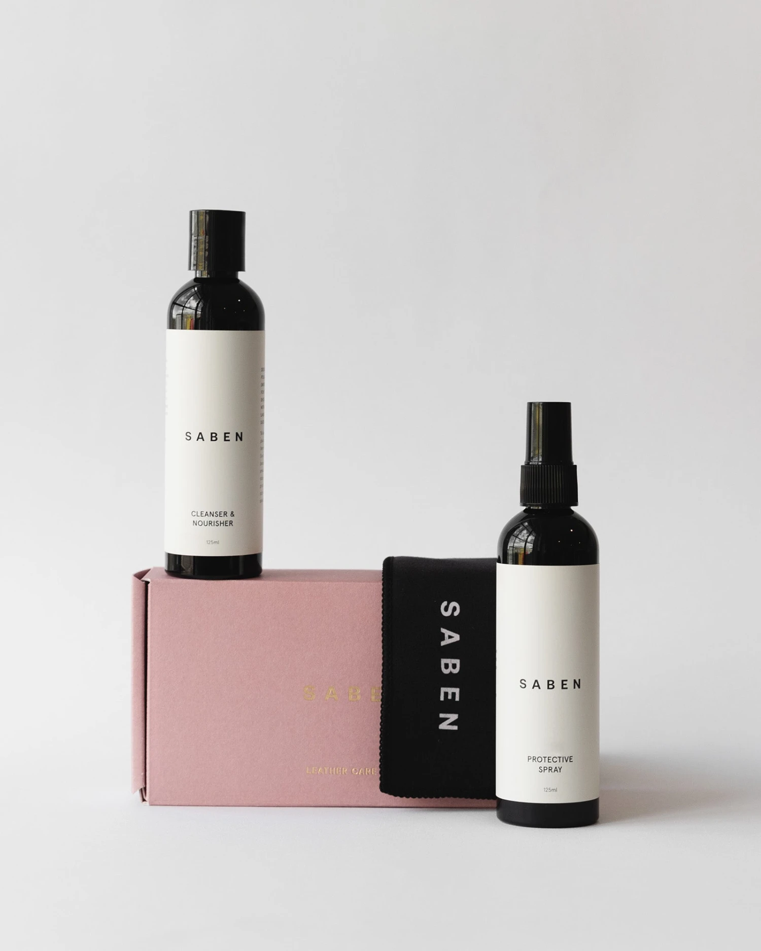 Keep your Saben leather pieces looking fresh with the complete Saben Leather Care Set.